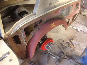 Further picture taken during my visit. Adam starts work on the nearside/LH. Inner sills welded on, and painted with weld-through primer.