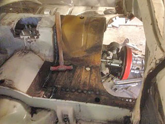 The new floor piece welded in (including the body/chassis mount).