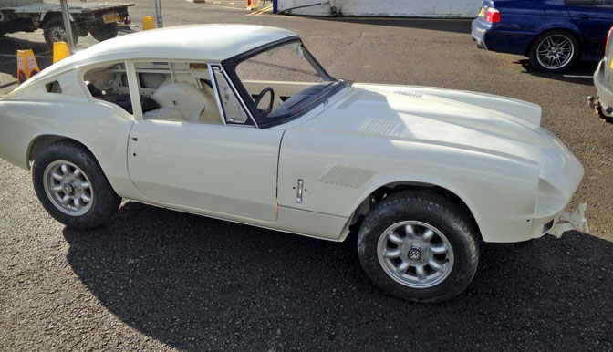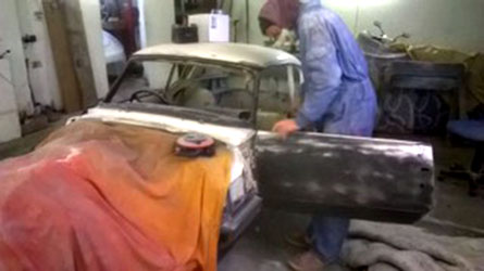 The picture below, posted on Facebook, of my Triumph in the paint shop. The bonnet has been removed, and is being worked on elsewhere. The tailgate has also been removed.