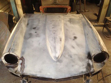 Quick visit to SCC, further picture of bonnet in progress, should be finished tomorrow or Friday. The rest of the car is at the paint shop. When it is joined by the bonnet, the whole car will then be sprayed together.