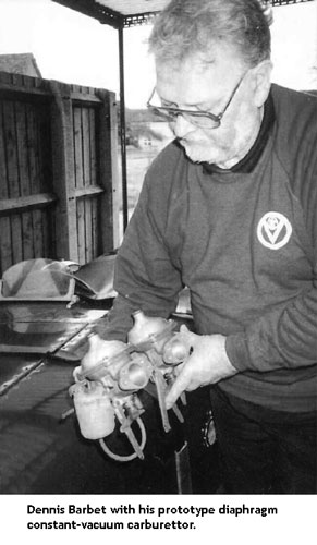 Standard-Triumph subsidiary Alford & Alder (mainly known for making rack and pinion steering assemblies and suspension parts) had a bright young engineer called Dennis Barbet. Starting with a clean sheet he designed an ingenious rubber diaphragm to control the air/fuel supply. According to Paul Richardson "the diaphragm still relied on throttle controlled vacuum on its upper surface to meter fuel via the jet and needle, but did away with the metal piston/cylinder arrangement of the SU." Paul asked Dennis how he came up with the idea. "Well the new carburettor had to work on the constant vacuum principle, but I had to find another way to control the air/fuel mixture via the variable choke. I suppose the idea of using the rubber diaphragm was due to the fact that I'd designed several pneumatic clamping devices involving rubber seals and diaphragms. The thought ran through my mind that if a rubber diaphragm could be clamped at its periphery to the carburettor body and to the movable choke assembly at its centre, I'd still have a constant vacuum carburettor, but a new way of controlling the needle in relation to the fuel jet orifice". The first application of this carburettor was the 948cc Triumph Herald.