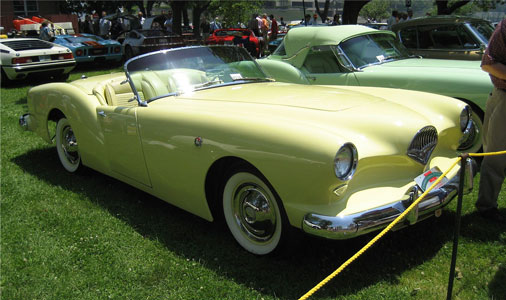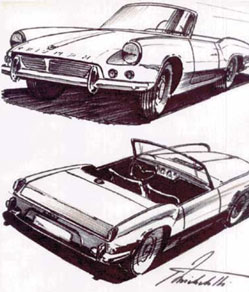 What influences did Michelotti have in the early 1960s? Characteristics of his TR Dream Car and the later Triumph Herald show American influence. Michelotti was a prolific designer who could summon sketches out of thin air, so he could included features that he observed in other cars, particularly American, without even realising! While thumbing through a copy of Classic & Sports Car I noticed a picture of the 1954 Kaiser Darrin. American designer Howard "Dutch" Darrin's trademark was "a sweeping fender line which descended gently along the side of the car until it reached a "dip" at the head of the rear fender" (for fender read wing). This feature can be seen in the following picture: