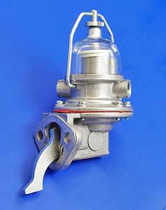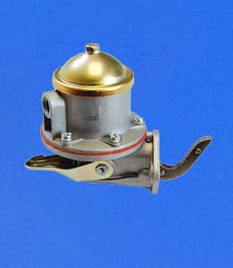 One of the most common type of fuel pumps used in automobiles was the single action, diaphragm-type mechanical pump (before the advent of modern electronic fuel injection). A diaphragm type fuel pump is usually mounted on the engine and is operated by an eccentric lobe on the camshaft. The GT6 is fitted with 2 different types of fuel pump, originally made by AC, the division of General Motors originally founded by Albert Champion of spark plug fame (see above). The GT6 Mk1 was fitted with the version with a glass sediment bowl, as were many Fords of the 50s and 60s, as per the first picture below. This didn't contain a filter (fitting a separate filter is recommended) but at least one could see if there was any sediment! Later models of GT6 were fitted with the brass top version, as per the second picture below.