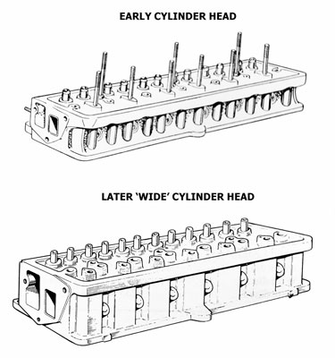 Another difference is that the earlier heads had distinguishable pushrod tubes visible between the spark plug holes: