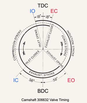 In these cases IO and EC are the same, as are IC and EO (the above would be described as an 18°/58° camshaft). IO/EC and IC/EO only differ in the more 'extreme' camshafts, as for example the ISKY road & race camshaft where the IO is 24° and the EC 1 degree more at 25°.
