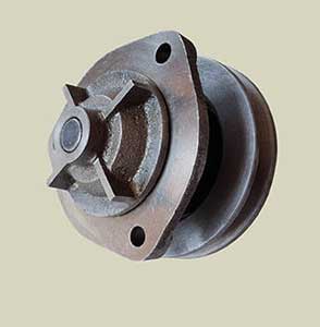 Below is the cast iron water pump housing, and the impellor type water pump. The blades of the 'impellor' can be clearly seen - driven by the engine mounted fan belt these spin causing the water to circulated in the direction of spin.