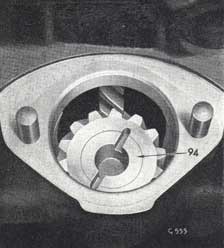 Ignition on the GT6 is by a Delco-Remy D200 distributor (see below left), driven by a bevelled gear that meshes with a similar one on the camshaft (see below right). Delco stands for 'Dayton Engineering Laboratories Co.' and they were pioneers in battery ignition back in 1909. Remy was another American manufacturer of electrical equipment, both became a single division of GM in 1918 known as Delco-Remy. Triumph fitted Delco-Remy distributors to Spitfires and GT6s, probably with their predominant American market in mind. Other Triumphs were fitted with Lucas distributors, which, according to Martin Jay of Distributor Doctor are better quality.