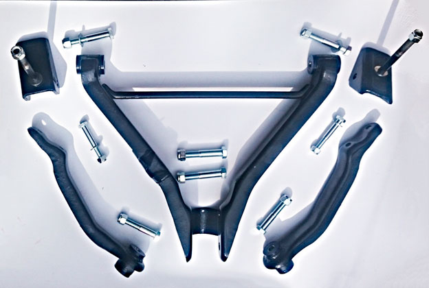 Above are the front suspension wishbones, cleaned up and repainted, together with the new nuts and bolts. The bolts are to the original specification. There's a school of thought that the length of thread means that one end of the bolt handles load on the thread at one end which can lead to wear as this is weaker than the other end. Special bolts are available with a shorter thread, but I rejected this option on two counts: