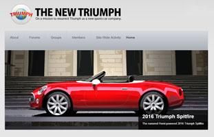 This website is Kevin Kastner's effort to capture and articulate a vision for the revival of the Triumph automobile marque. He believes there are enough Triumph fans left in the world to generate demand for a new Triumph motorcar company and he needs your help to prove it! |
