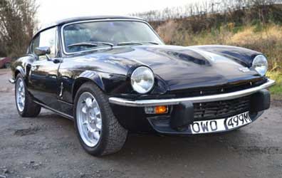 "This prime 1973 example has led a charmed life receiving not one, but two comprehensive restorations in its lifetime. Its massive history file includes a Heritage Certificate which shows that it was originally white with black trim and was completed on 31st August 1973 and dispatched from the factory on 1st October of that year. It was fitted with an overdrive and Sundym glass. The original Passport to Service was first stamped by the supplying dealer, Millar Brothers of Leamington Spa, and contains 5-stamps in total. A letter from a previous owner states that in the 1980s (its first restoration), it was completely stripped and fitted with a galvanized chassis (although it is unclear whether this was a new one or the old one sent away for treatment), a completely new bodyshell and a 2.5-litre engine from a Triumph saloon. No fewer than 29 old MOTs show that it has covered just 26,000 miles since 1980. By the mid '90s its then owner decided to give it another full restoration to get it to the condition that he desired and embarked on a full strip and repaint as well as a whole host of upgrades, bills on file adding up to over £30,000! He fitted wider wheel arches to accommodate the 6 1/2J Minilite wheels and Goodyear NCT tyres. The galvanized chassis was, of course, found to be excellent and was further wax injected and fitted with Spax adjustable shock absorbers, uprated springs and anti-roll bars. The rubber bushes were replaced with modern nylon and the brakes were upgraded with 4-pot calipers on the front with vented discs and a servo. Goodrich hoses and stainless fuel lines were also fitted. The 2.5-litre engine was stripped and fitted with a gas-flowed head, TriumphTune camshaft, vernier timing gears and a lightened flywheel. A custom fuel rail was made and fitted with modern injectors (BMW), all mated to an Emerald ECU to control fuel flow. A stainless manifold and twin-exhaust system makes the car sound as one would expect, a Kenlowe fan keeps it nice and cool and a Hi-torque starter makes for confident starting. It has a D-type gearbox with overdrive and an uprated clutch and a completely new wiring loom was fitted during the rebuild. Inside there are extra gauges, leather upholstery and lashings of walnut veneer. It was then professionally painted in black which remains in excellent condition with just a few minor blemishes. Purchased by the vendor in 2005 from The Old Coach House Motor Company, it has been thoroughly loved and polished ever since. It has been serviced religiously every year by local garage, Brian Watkins Car Services, who have always queried why the vendor is getting it done as it has only ever covered a handful of miles between MOT certificates, its current MOT expiring on 27th July 2015. The records show that it had covered 23,000 miles on its original engine and a further 29,000 with the larger 2.5-litre unit, making total of 52,000 miles from new. It is being sold with an original sales brochure, a car cover and 'car-bra' which covers the front to avoid stone chips. It even has a complete original tool kit and a secondary, more comprehensive kit which has been assembled by the owner over the last few years."