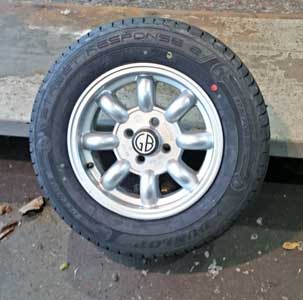 The original wheels were discarded in 1980 when wider 5½J x 13" Dunlop steel wheels were purchased. As these are now rusty, I decided to get some 'Minilite' type wheels as these are popular and they suit the GT6. Luckily I obtained some GB wheels (which are period to the car) from ebay and in superb condition.