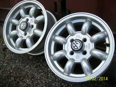 Shortly after suing GB, Tec Del went out of business. Current 'Minilite' wheels are made by a company also called Tech-Del (differentiated from the original company by the hyphen), which is not connected to the original company. "GB" wheels are now sold by John Brown Wheels, but they are not the same as the originals (and they are only available in classic Mini sizes). My wheels have an ET10 offset, and are KBA certified (Kraftfahrt-Bundes-amt or the German Federal Motor Transport Authority) which means their strength has been tested!